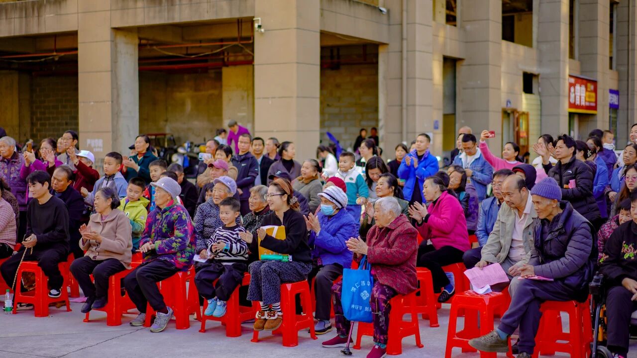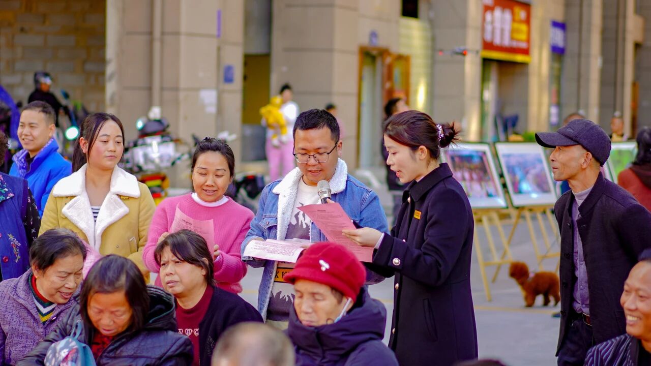 社区广场上,普法宣传与黔东民俗风情摄影作品展相映成趣,融法治意识于文化浸润;非遗展演与知识竞答交织进行,傩戏傩技震感全场,多彩舞蹈尽显民族风情,知识互动趣味盎然,现场气氛热烈而温馨。