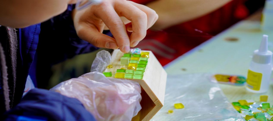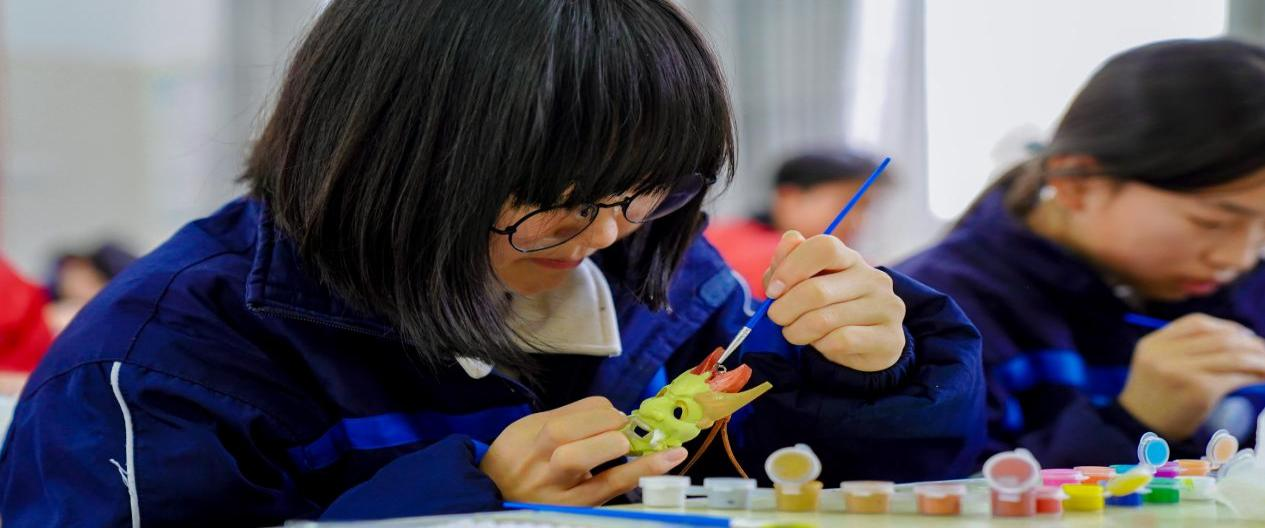 同学们绘制傩面挂件