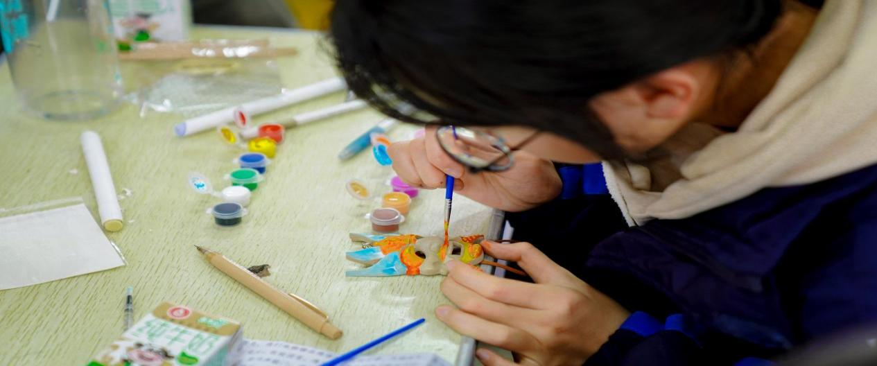 手工彩绘傩面挂件活动,宛如色彩盛宴。同学们拿起画笔,在原木傩面挂件上尽情挥洒,用色彩描绘心中傩面具形象。每一笔都饱含对传统文化的热爱与敬意,每一抹色彩都似连接过去与现在、传承与创新的桥梁。