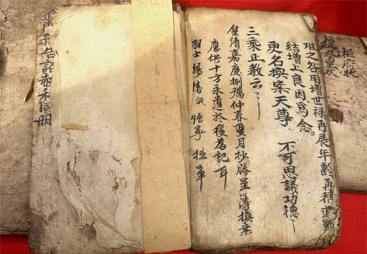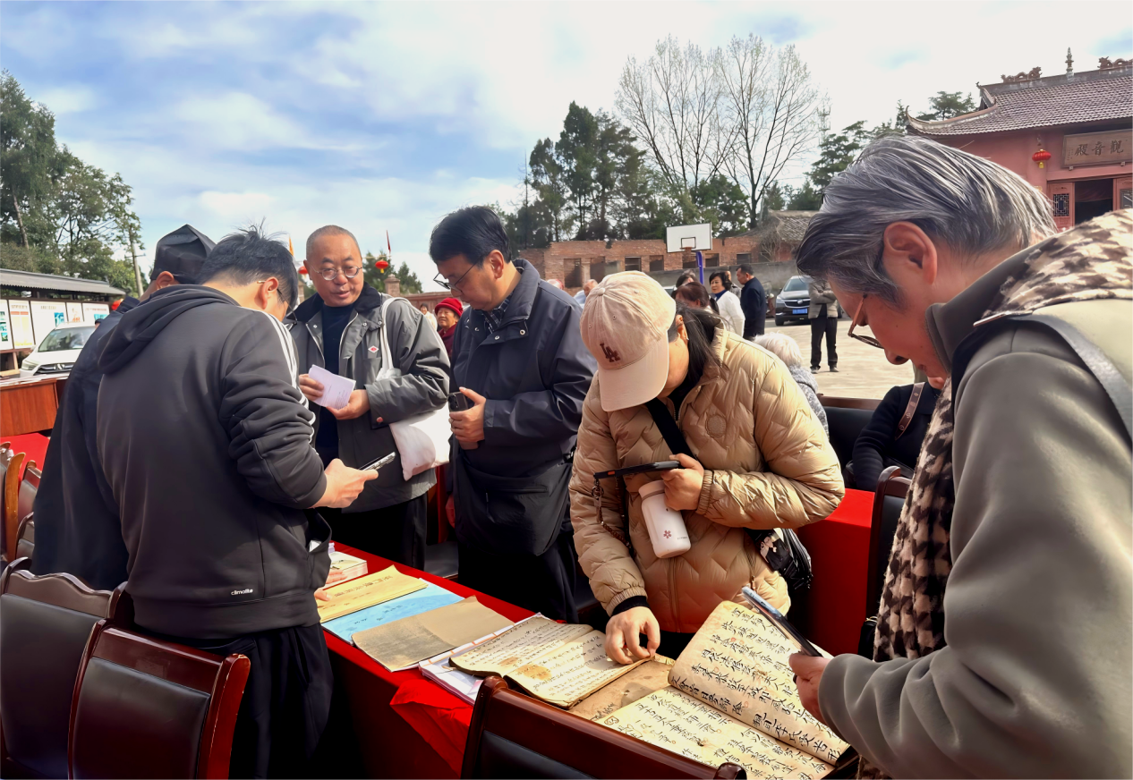 调研中,专家组重点查看了现存的多部手抄本傩戏剧本,其中版本最早的剧本抄录时间可追溯至清嘉庆八年(公元1803年)。目前,这些手抄本大多存在不同程度破损,保存状况堪忧。对此,专家组一致强调,加快推进剧本扫描与数字化建档工作刻不容缓。此外,专家建议剑阁当地非遗工作人员积极走访、动员仍保存有老剧本的傩戏传承人及家属,争取将更多遗存剧本纳入数字化保护体系,为杨村傩戏申报国家级非物质文化遗产代表性项目提供扎实的文献支撑。