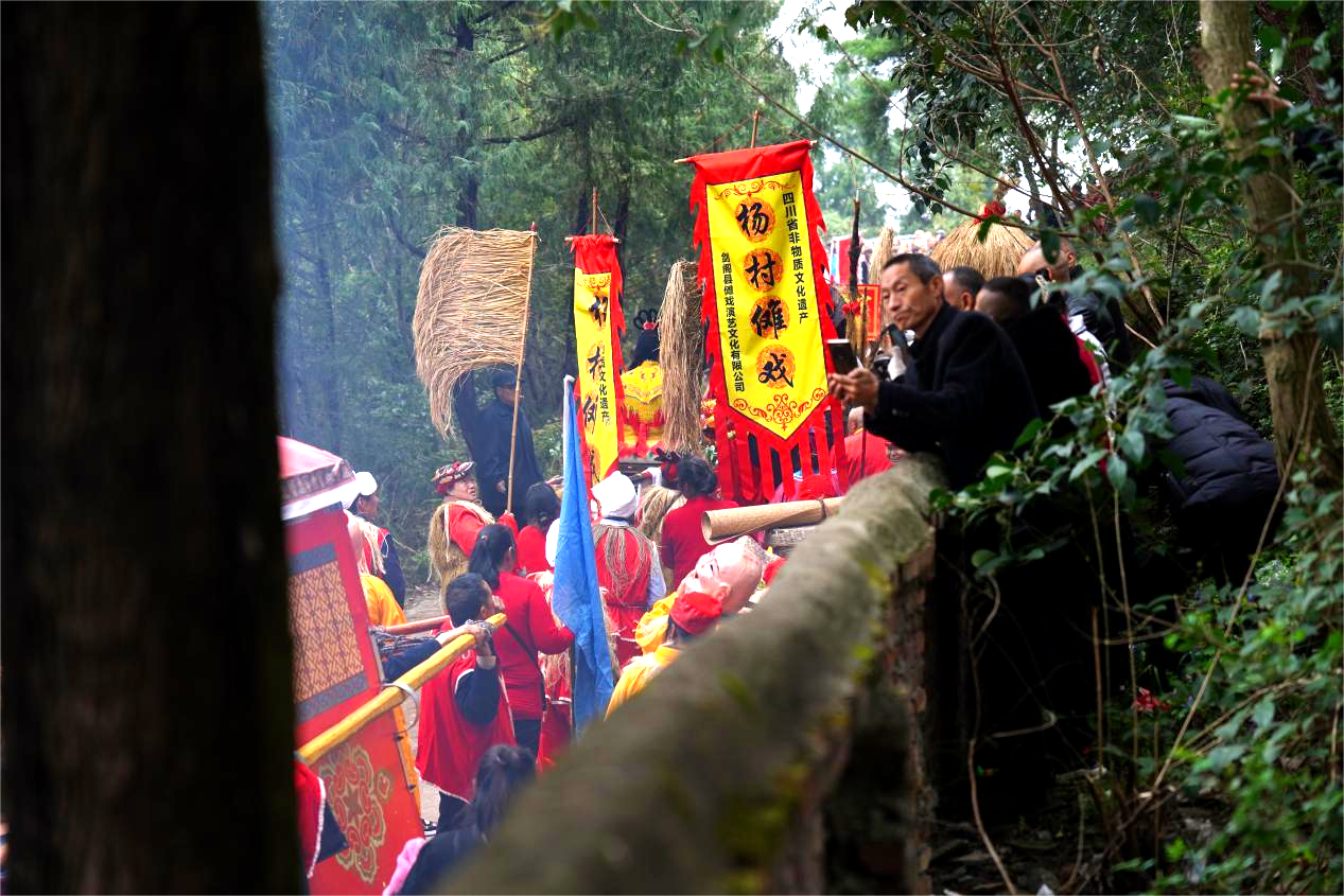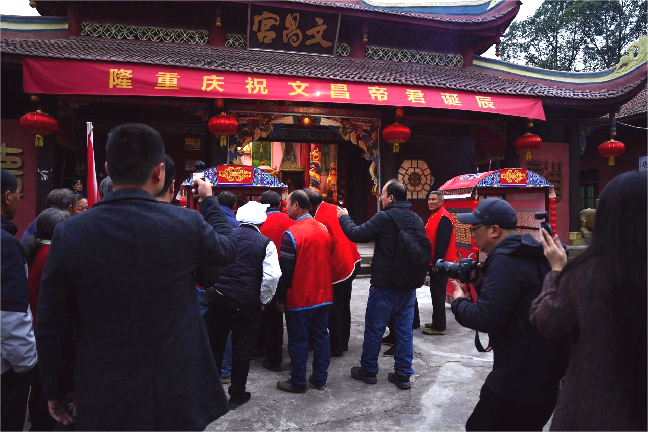 3月21日是剑阁县杨村镇二月初三“文昌会”举办之日。是日清晨,气势磅礴的“文昌巡游”队伍在震耳欲聋的鞭炮声中铿锵前行,以鼓、锣、钹作为伴奏,沿途百姓行香,万人空巷,祈愿家族文运昌盛。