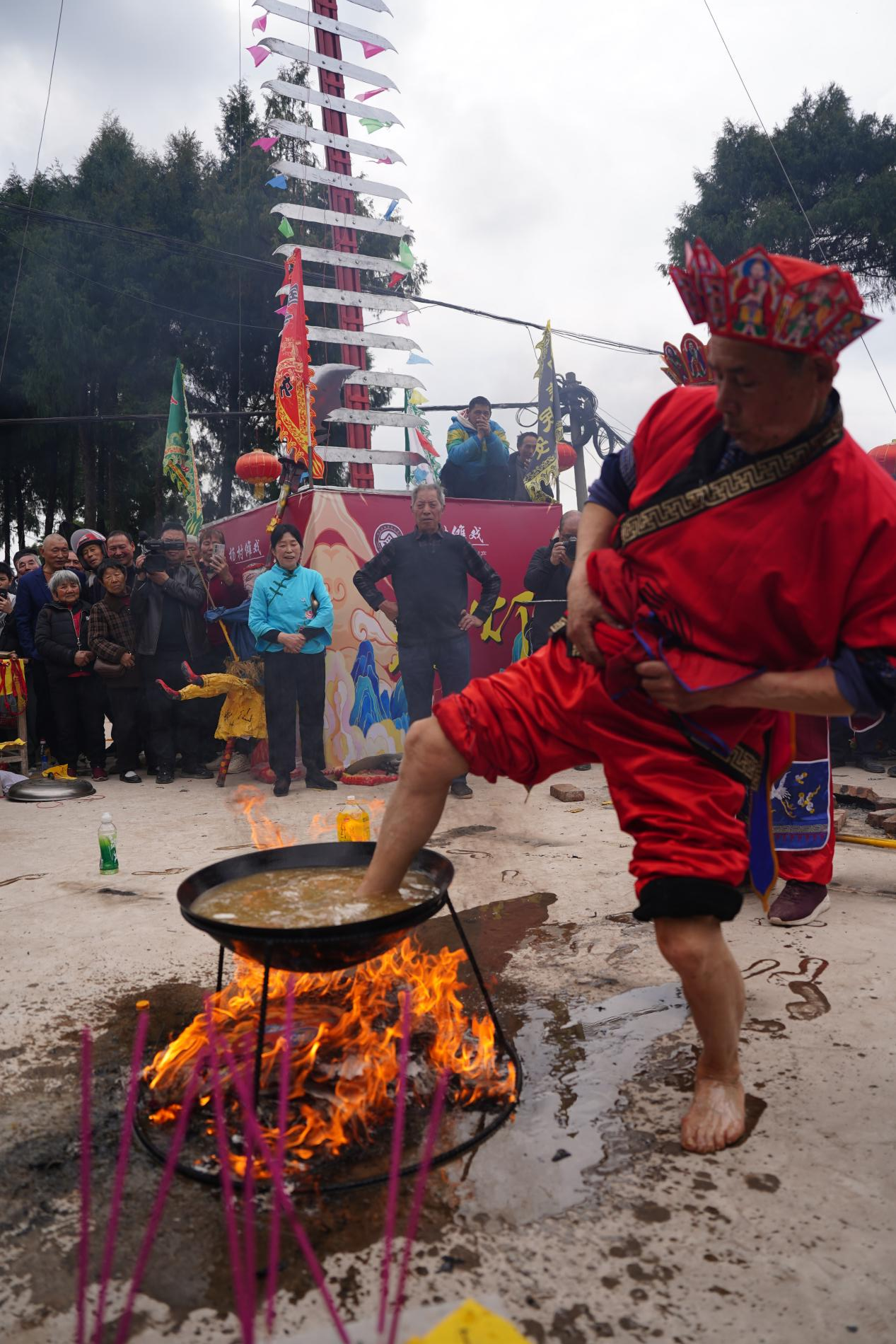 傩技“踩油锅”