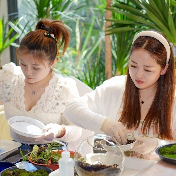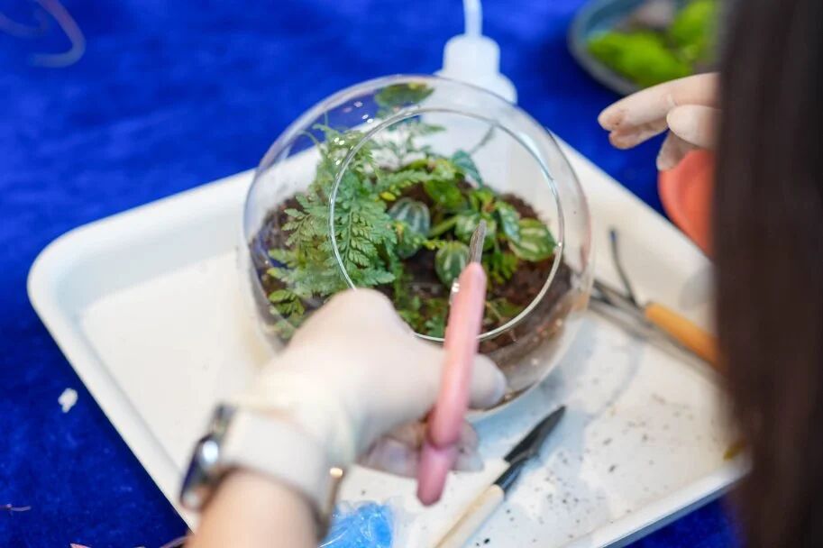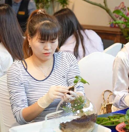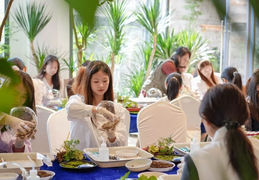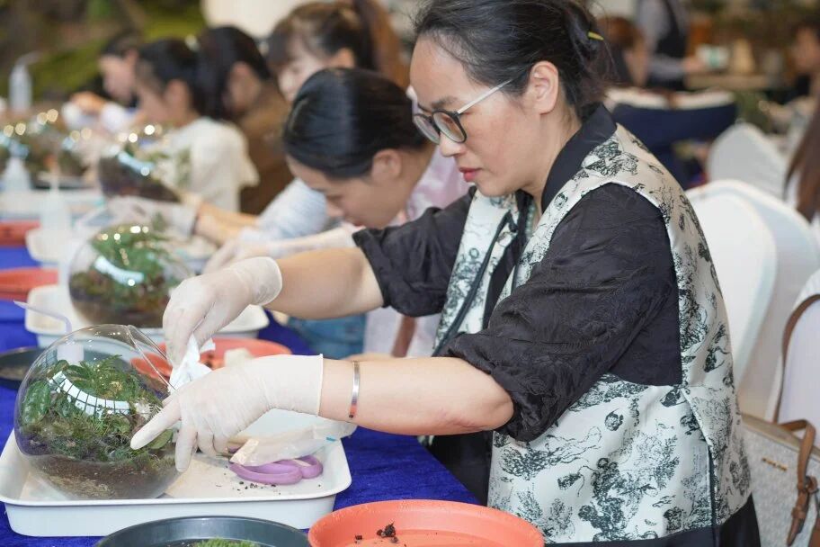 踏入“绿植苔语·景映自然”的微景观盆栽环节,仿佛进入了一个静谧而充满生机的微观世界。园艺师宛如一位智慧的引路人,以“黄金三角”构图法则为钥匙,轻轻开启绿植世界的神秘大门。参与者们全神贯注,用心去构建,将一片片翠绿的叶片、一株株小巧的植株,巧妙地组合成心中的那片绿洲。那绿洲,是心灵的栖息之所,是喧嚣尘世中的一方宁静净土,让疲惫的灵魂得以在这片绿意中安然栖息。